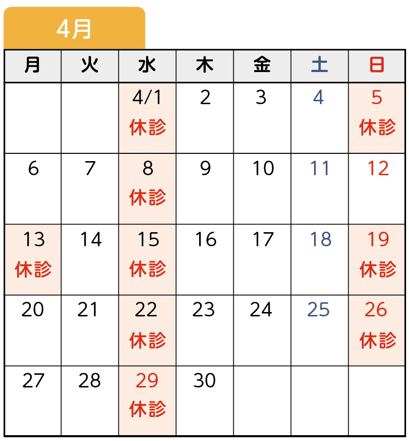 4月 休診日のお知らせ